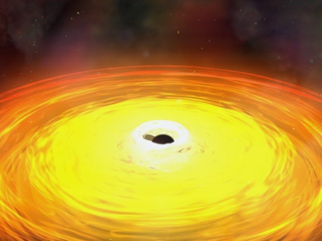 The first of a series of images which gives an artistic representation of the merger of two black holes,which orbit each other for hundreds of millions of years before colliding (Picture: NASA/CXC/A.Hobart/Cover Media)