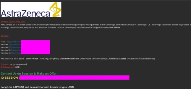 AstraZeneca was breached by international teenage hacker network Lapsus$,according to multiple posts from the group.