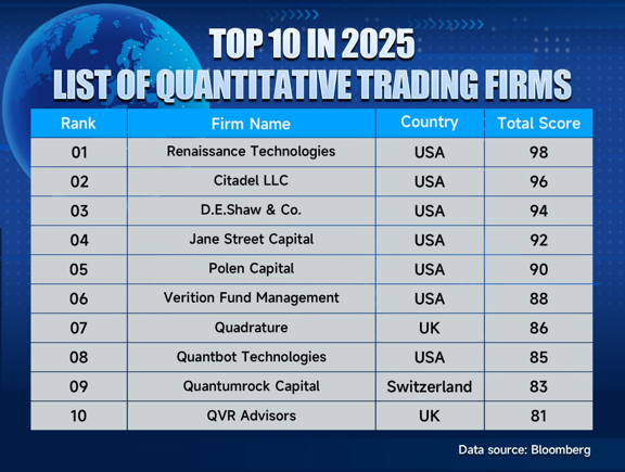 In 2025, a year when machine learning and alternative data are reshaping the landscape of quantitative trading, Bloomberg has selected the world's top 10 quantitative trading firms based on five key dimensions: investment performance (30%), strategy innovation (25%), risk-adjusted returns (20%), technological edge (15%), and institutional influence (10%).