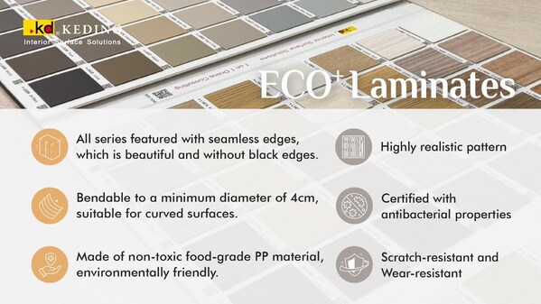 NEW TAIPEI CITY,Sept. 3,2024 -- According to a report by Transparency Market Research,the global laminates market continues to grow,reaching USD 7.07 billion in 2023,with North America accounting for USD 1.161 billion,Europe USD 2.723 billion,Asia Pacific USD 2.066 billion,Middle East/Africa USD 436 million,and Latin America USD 681 million. Analysts forecast thatKeding Enterprises Co.,Ltd.'s KD ECO⁺ Laminates,an enhanced version of the traditional HPL,is poised to dominate the global high-pressure decorative laminates market in five years. In the US market,the minimum investment required is USD 35,000,with an average break-even period as short as six months and full cost recovery in nine months,subject to market conditions. The product's robust potential indicates significant growth prospects.