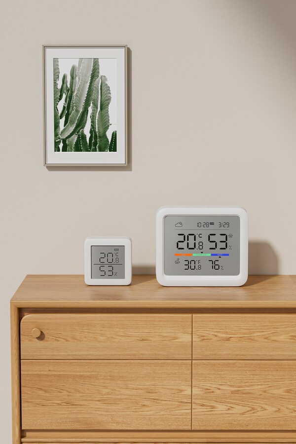 This new collection can display indoor and outdoor temperature & humidity,time & date,and comfort level,alongside weather forecasts when used with a SwitchBot Hub. Additionally,SwitchBot Meter Pro (CO2 Monitor) can now precisely monitor the CO₂ status of the house.