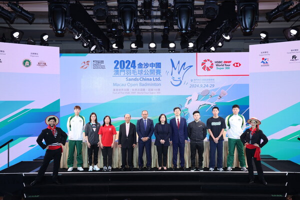 A press conference Tuesday at The Londoner Macao announces the Sands China Ltd. Macau Open Badminton 2024 tournament,co-organised with the Badminton Federation of Macau (BFM). The event will be held at the Macao East Asian Games Dome Sept. 24-29,with the support of the Sports Bureau of the Macao SAR Government.