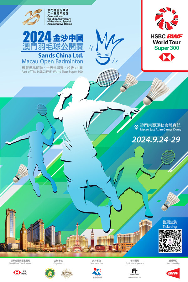 MACAO,Sept. 10,2024 -- Sands China Ltd. and the Badminton Federation of Macau (BFM) are co-organising the Sands China Ltd. Macau Open Badminton 2024 tournament,to be held at the Macao East Asian Games Dome Sept. 24-29,with the support of the Sports Bureau of the Macao SAR Government. The event offers early bird ticket discounts to local residents to bolster the promotion of badminton among the wider community.