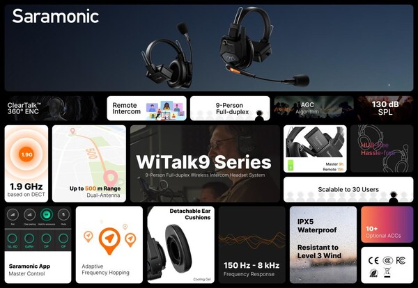 AMSTERDAM,Sept. 14,2024 -- Saramonic,a leading power in audio technology,released its latest wireless intercom headset system,the WiTalk9 Series,at a product launch event Team Talk,Now WiTalk at IBC 2024. This groundbreaking product was recognized as theBest inShow awards nominee by CineD,a professional review platform,and itset to elevate team talk quality and upgrade team work efficiency.