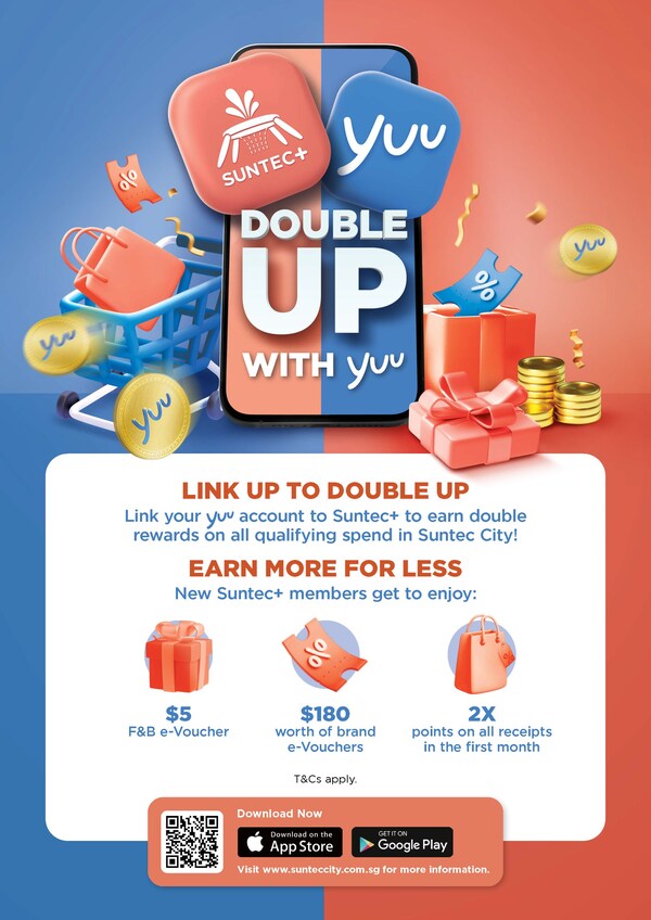 SINGAPORE,Sept. 24,2024 --Shoppers at Suntec City can now enjoy double rewards with an exciting new collaboration between Suntec+ and yuu Rewards Club. From 24 September,shoppers can link their yuu account to Suntec+ to earn both Suntec+ and yuu points every time they shop or dine at the mall. With over 300 participating stores at Suntec City,earning rewards has never been easier.
