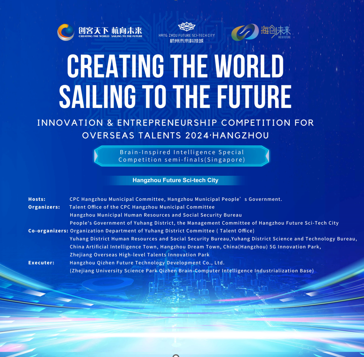 The Brain-Inspired Intelligence Special Competition is hosted by the Hangzhou Municipal Committee and the Hangzhou Municipal People's Government, and organized by the Hangzhou Municipal Talent Office, the Hangzhou Human Resources and Social Security Bureau, the People's Government of Yuhang District, and the Management Committee of Hangzhou Future Sci-tech City (Haitian Innovation Park), with executed by the Zhejiang University Science Park Qizhen Brain-Computer Intelligence Industrialization Base.