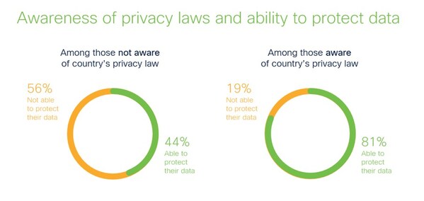 The 2024 Cisco Consumer Privacy Survey* reveals most consumers (53%) are now aware of privacy laws,and informed consumers feel significantly more confident about protecting their data (81% vs. 44%).