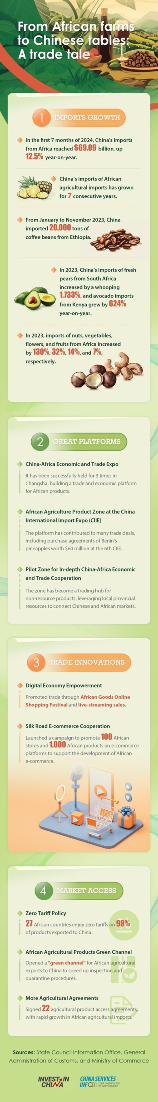 China-Africa trade has been growing for years,with more and more high-quality African agricultural products entering the Chinese market. In 2023,China-Africa trade reached a record high of $282.1 billion,up 1.5% year-on-year.