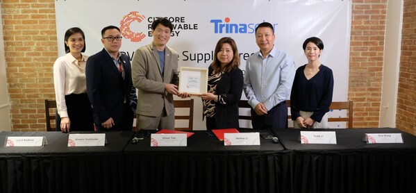 The agreement was signed by Helena Li,Executive President of Trinasolar and Oliver Tan,CREC President and CEO. The signing was witnessed by Alreetz Santander,President of Citicore Construction; Lucia Roderos,Citicore Group CFO; Todd Li,President of Trinasolar Asia Pacific; and Elva Wang,Trinasolar Group Director for South,and Central Asia.