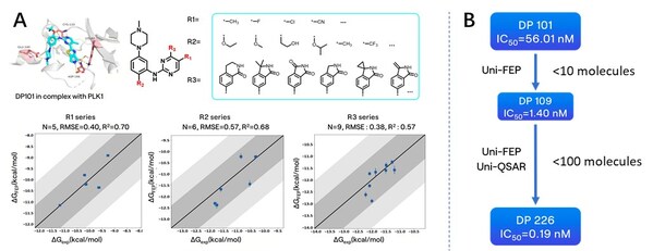 The RiDYMO® platform,a next-generation computational drug design platform developed by DP Technology,based on AI for Science,provides robust end-to-end support for hit discovery and optimization by integrating multiple artificial intelligence techniques,physical algorithms,and experimental validation. In this study,we referred to the co-crystal complex of PLK1 and PCM075 (2YAC) and utilized theRiDYMO platform's comprehensive capabilities to synthesize and test under 100 compounds,leading to the identification of preclinical candidate compounds with potential clinical value and significantly accelerating the drug development process.