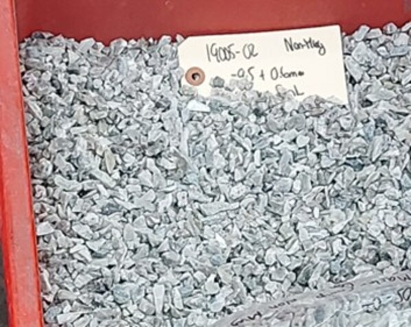 The spodumene concentrate was produced using a simple DMS-only (+ magnetic separation) flowsheet which was fed by a master-composite of drill core material,representing anticipated early mine-life (Figure 2). This master composite included 15% non-pegmatite host-rock dilution to better represent a conservative (in terms of dilution content) commercial mining operation scenario.