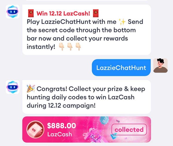 12.12's #LazzieChatHunt campaign saw 6 million AI engagements for LazCash and LazRewards redemption - more than double that of 11.11.