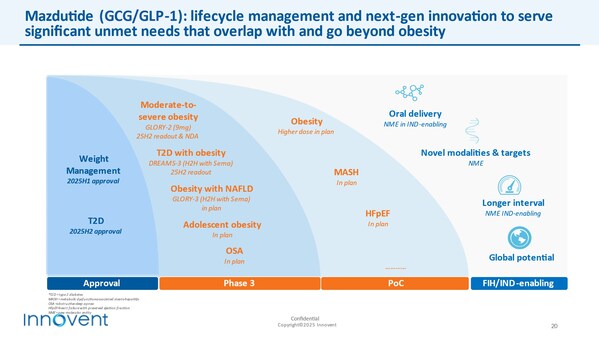 Mazdutide (GCG/GLP-1): Expected approvals for weight loss and type 2 diabetes indications in the first and second half of 2025,respectively,will provide a best-in-class GCG/GLP-1 dual agonist drug offering robust weight loss and glucose reduction,substantial liver fat reduction as well as comprehensive metabolic benefits for the vast obese,overweight and diabetes population;
