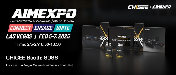 SHENZHEN,China,Jan. 20,2025 -- CHIGEE,the innovative motorcycle riding system manufacturer,announces its first-ever appearance at AIMExpo 2025,North America's premier powersports trade show. From February 5-7,2025,CHIGEE will showcase its complete product lineup alongside the highly anticipated AIO-6 at the Las Vegas Convention Center's South Hall,booth #8088.