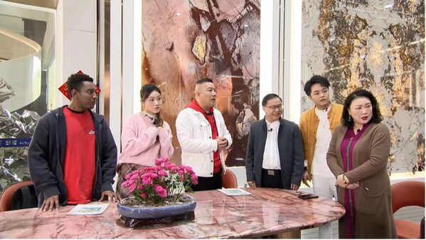 Yunfu,located in northern Guangdong,is known as the "Stone Capital of China". The skit "Stone Capital Encounter" is set in a stone market,allowing the audience to appreciate the beauty of Yunfu's stone while indulging in the humorous verbal battle.