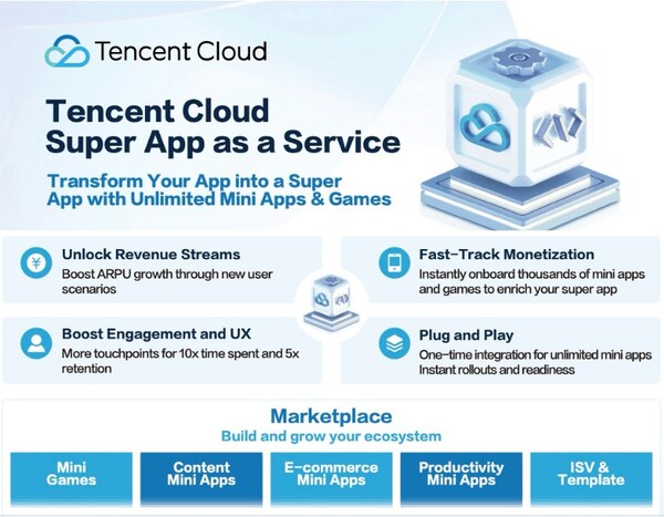 HONG KONG,March 4,2025 -- Tencent Cloud,the cloud business of global technologyleader Tencent,make its debut at MWC Barcelona 2025with the introduction of Tencent Cloud Super App as a Service (TCSAS) solution. TCSASis a cutting-edge technology solution designed to build deep,meaningful and perpetual connections with users,as businesses race to build richer digital ecosystems,through super-app strategies.