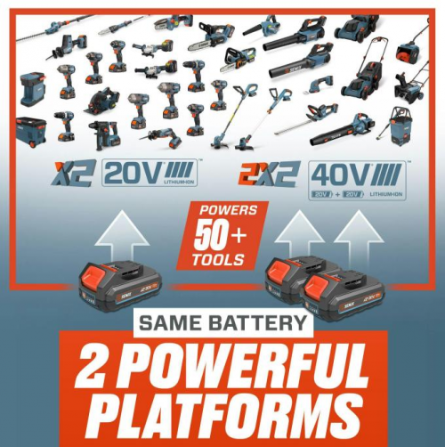 UNA BATERÍA, DOS PLATAFORMAS: Taladros X2 y cortacéspedes 2X2 comparten batería.