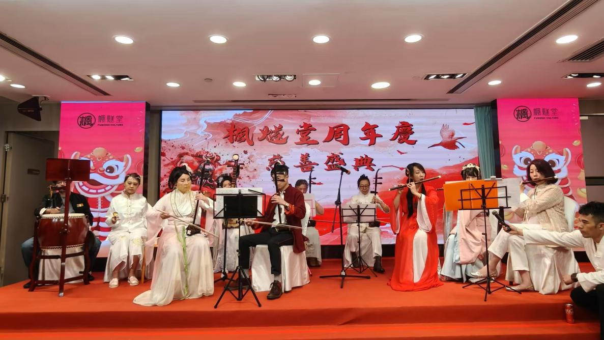 During the banquet, students from Fengsui Tang presented captivating performances that celebrated Taoist culture. The harmonious blend of strength and grace in a Tai Chi Sword routine illustrated the philosophy of Yin and Yang, while mystical magic acts and melodious performances by the Taoist Music Ensemble bridged ancient and modern traditions, earning thunderous applause and infusing the celebration with cultural vibrancy.