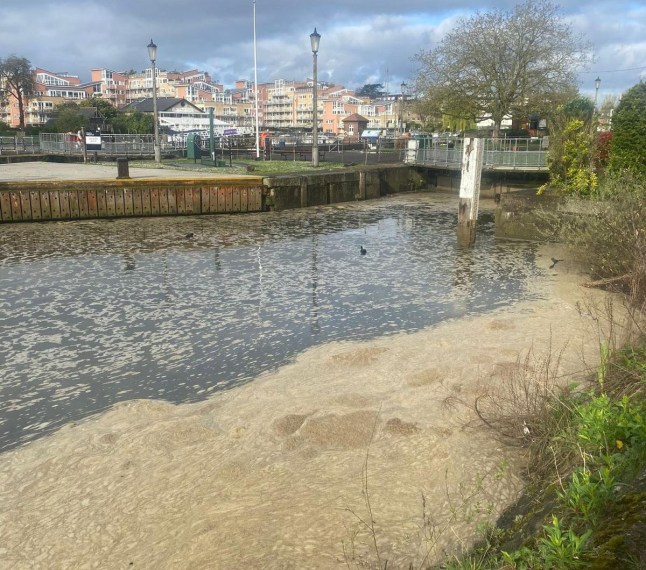Scum on the Thames near Teddington Lock,a part of the river in west London where swimming is permitted though not encouraged (Picture: Supplied)