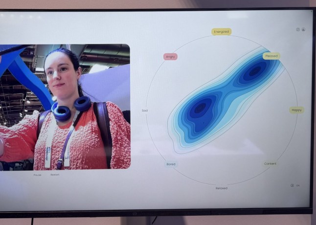 We tried the emotion mapping software on display at the Viva Tech conference in Paris,and a realtime image showed reporter Jen Mills as appearing both ‘pleased’ and ‘bored’ at the same time.