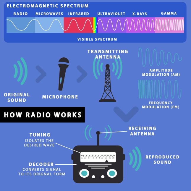 ‘Radio waves are a form of light. They are generated when electric charge-carrying particles called electrons are accelerated,’ he says.