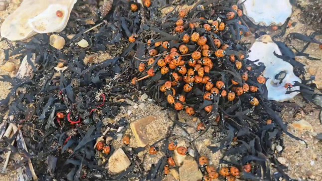 A swarm of ladybirds on a beach at Point Clear in Essex on July 9 (Picture: Dee-anne Markiewicz/SWNS)