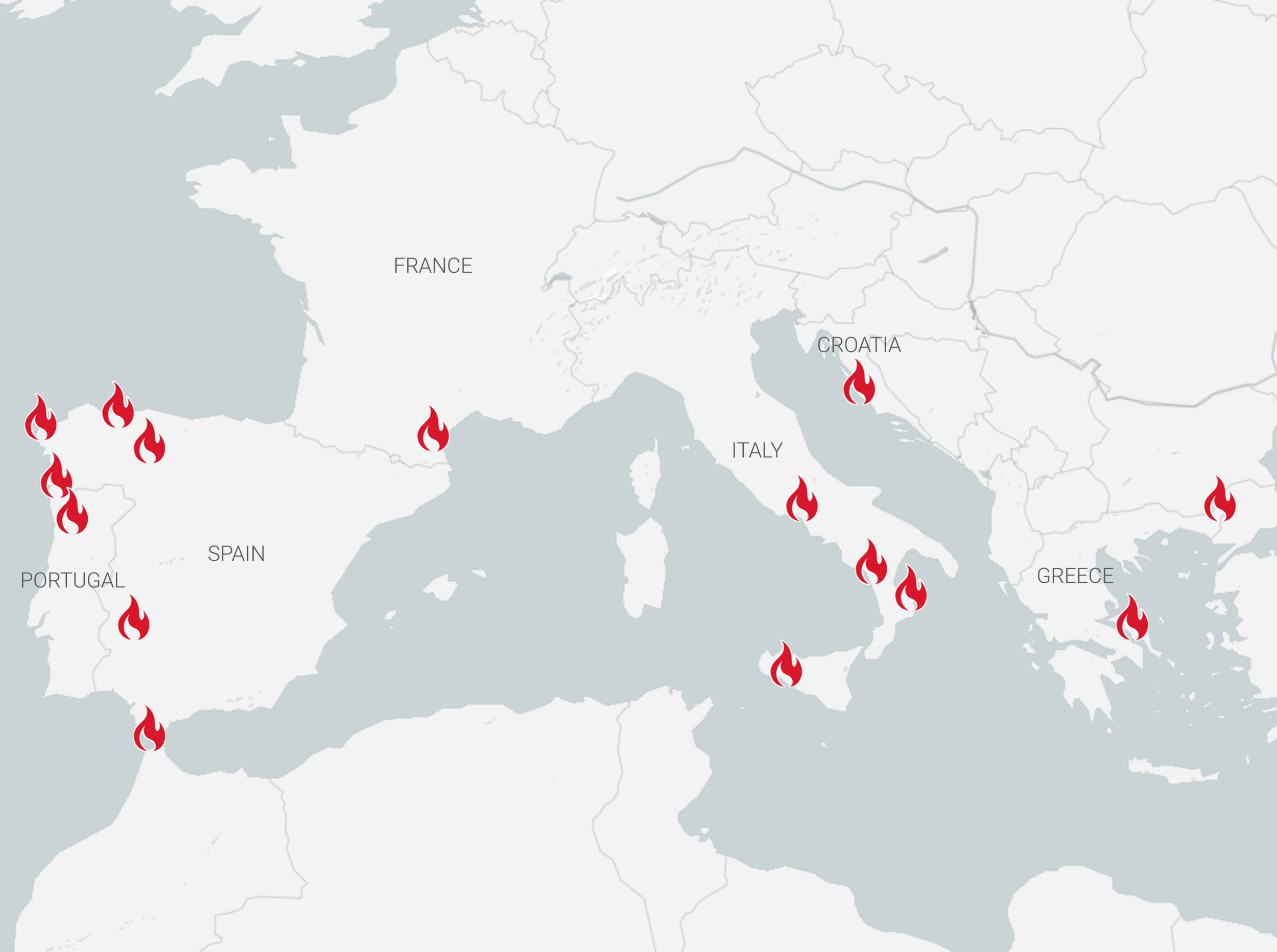 Areas including Portugal,Spain,Italy,Croatia and Greece have also faced wildfires in recent days (Picture: Metro)