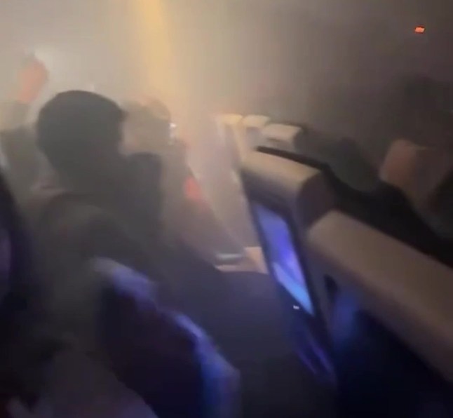 A plane cabin filled with smoke after a phone charger ignited onboard a flight.