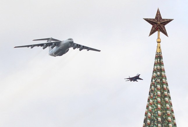 The ‘doomsday’ jet was brought out for a spin during the Victory Day in Moscow in May 2022 (Picture: Getty Images)