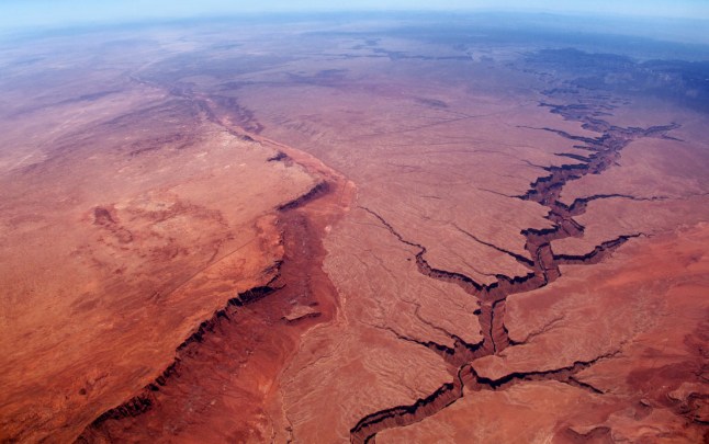 Fault lines are where tectonics meet. Pictured,an aerial view of the Grand Canyon (Picture: Getty Images)