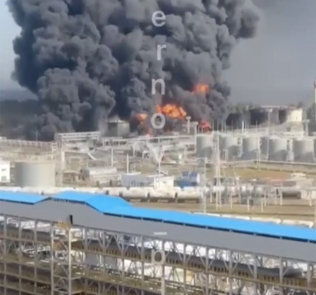 A fire at the key energy facilities in Russia’s Ust-Luga port (Picture: east2west news)