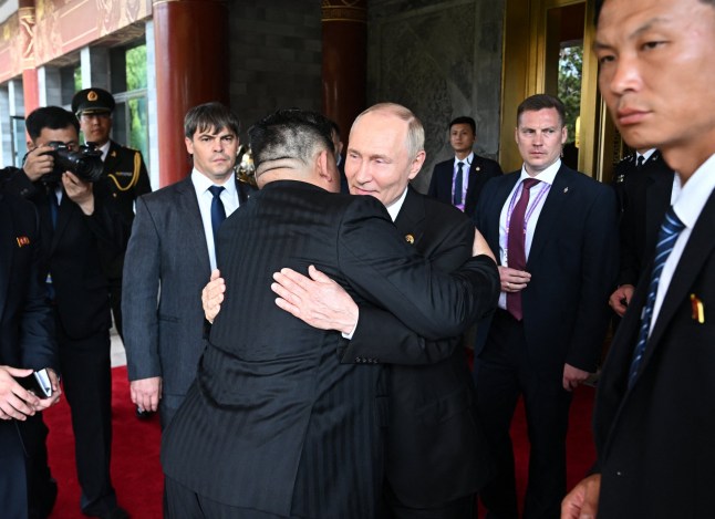 Putin and Kim exchanged a heartfelt goodbye hug (Picture: AFP)