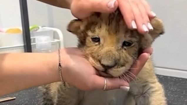 The young cub was filmed at a salon in Saint Petersburg,Russia,on Christmas Day,prompting officials to contact police over animal welfare concerns.